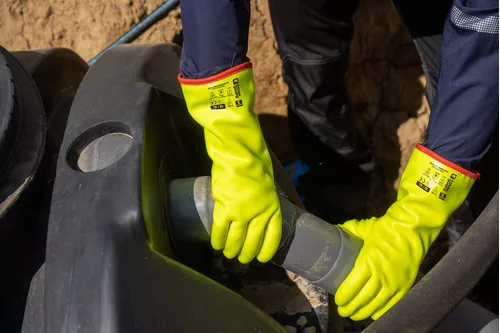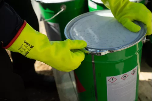 * Végig mártva sárga PVC-vel és a tenyerén csúszásbiztos szemcsés bevonat