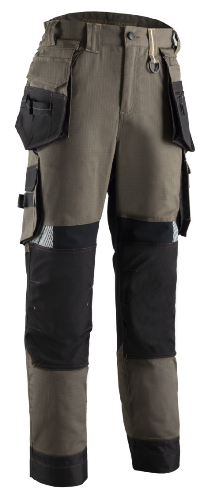 Ripstop: 60% pamut / 40% PES - 280 g/m2 + poliamid / sztreccs betétek + Oxford poliamid/sztreccs - 300D - sötétszürke/narancs Magasított derék 10 zseb 2 szerszámtartó hurok Sztreccs betétek: lépésbetét + térd felett + térd mögött Oxford sztreccs alapanyagú térdvédő zsebek kontrasztos színek YKK cipzár a sliccen Láthatósági díszcsíkok tripla biztonsági varrás A száron még 5 cm-es lehajtási lehetőség Regular fit EN 14404: Type 2