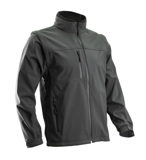 * 2/1-ben szürke kabát/mellény, levehető ujjakkal , három rétegből álló, 310 g/m2-es Softshell(R) anyag
