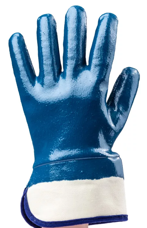 * pamutra csuklóig kétszer mártott kék nitril* mártott kézhát* merev, biztonsági mandzsetta* nedves körülmények közt is használható gazdaságos változat mechanikai ártalmak ellenEN 388:2016 4111x