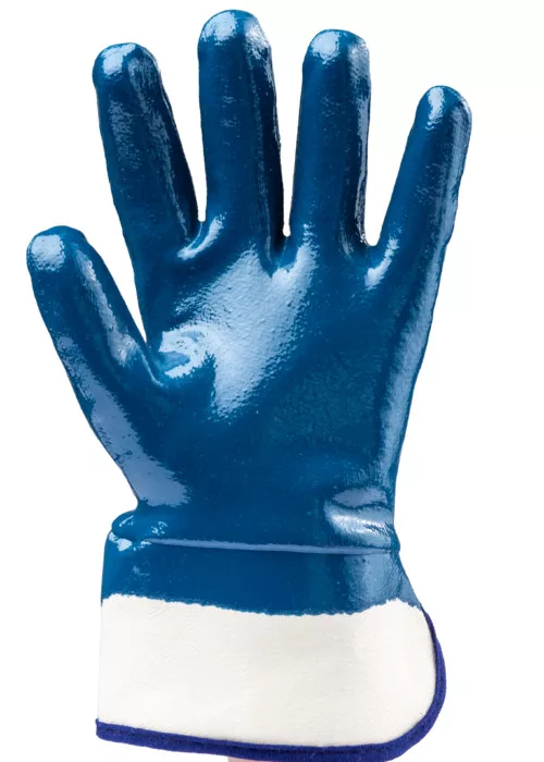 * pamutra csuklóig kétszer mártott kék nitril* mártott kézhát* merev, biztonsági mandzsetta* nedves körülmények közt is használható gazdaságos változat mechanikai ártalmak ellenEN 388:2016 4111x