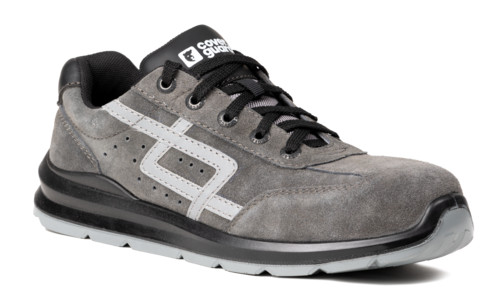 • perforált marhahasíték bőr felsőrész fényvisszaverő logóval • szellőző hálós poliészter bélés • fröccsöntött kétrétegű poliuretán talp, mely olajálló és csúszásbiztos acél felületen és kerámia padozaton • energiaelnyelő sarok • acél orrmerevítő • acél talplemez • MÉRET: 38-47 • SZÍN: szürke - fekete