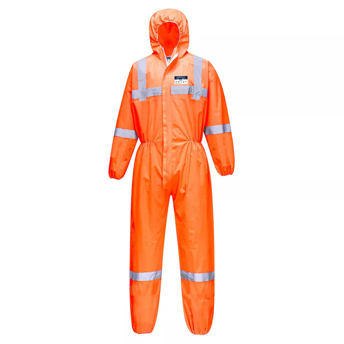 Ez az overál Hi-Vis szalagokkal rendelkezik a fokozott láthatóság érdekében éjszaka vagy gyenge fényviszonyok között. Magas szakítószilárdságú, tartós, háromrétegű szövet, mely biztonságot és kiváló mozgásszabadságot nyújt viselőjének. Folyadék- és részecskeszűrődést biztosít a munkavállaló védelme érdekében anélkül, hogy akadályozná a mozgást és a kényelmet.
